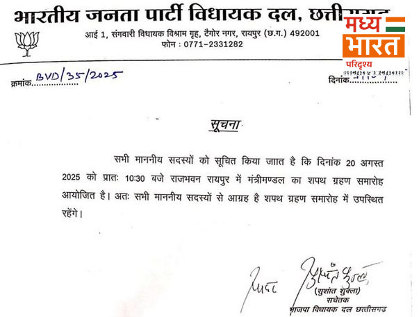 छत्तीसगढ़ में मंत्रिमंडल विस्तार की प्रक्रिया अब अंतिम चरण में पहुँच गई है। लंबे समय से चल रही चर्चाओं के बाद कल नए मंत्रियों को शपथ दिलाई जाएगी। शपथ ग्रहण समारोह सुबह 10:30 बजे आयोजित होने की संभावना है।