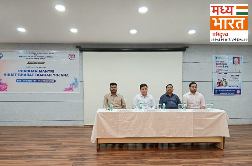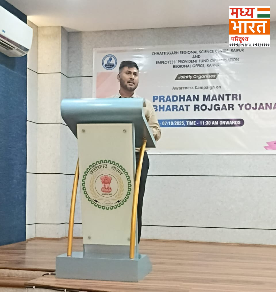 रायपुर — कर्मचारी भविष्य निधि संगठन (EPFO), रायपुर द्वारा ‘प्रधानमंत्री रोजगार प्रोत्साहन योजना’ पर एक जागरूकता कार्यक्रम का आयोजन किया गया। श्रम एवं रोज़गार मंत्रालय, भारत सरकार के मुख्य लेखा नियंत्रक (CCA), श्री बिनोद कुमार अग्रवाल ने इस कार्यक्रम की अध्यक्षता की और अपने दो दिवसीय आधिकारिक दौरे के दौरान योजना के उद्देश्यों, उपलब्धियों तथा इससे जुड़े विभिन्न पहलुओं पर विस्तृत जानकारी दी।