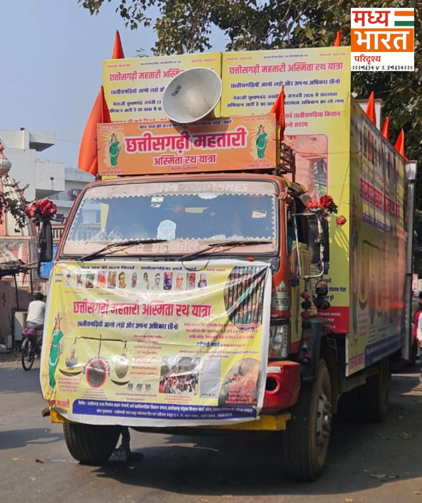 रायपुर।सर्व छत्तीसगढ़िया किसान समाज के तत्वावधान में निकाली जा रही “छत्तीसगढ़ी महतारी अस्मिता रथ यात्रा” आज अभनपुर विधानसभा क्षेत्र से आगे बढ़ते हुए पाटन विधानसभा के जामगांव पहुंची। यात्रा का नेतृत्व चेतन देवांगन, शिवनारायण ताम्रकार, विमलेश चंद्राकर और गंगाराम साहू कर रहे हैं, जबकि राज्य निर्माण संग्राम सेनानी लालाराम वर्मा मार्गदर्शन कर रहे हैं।