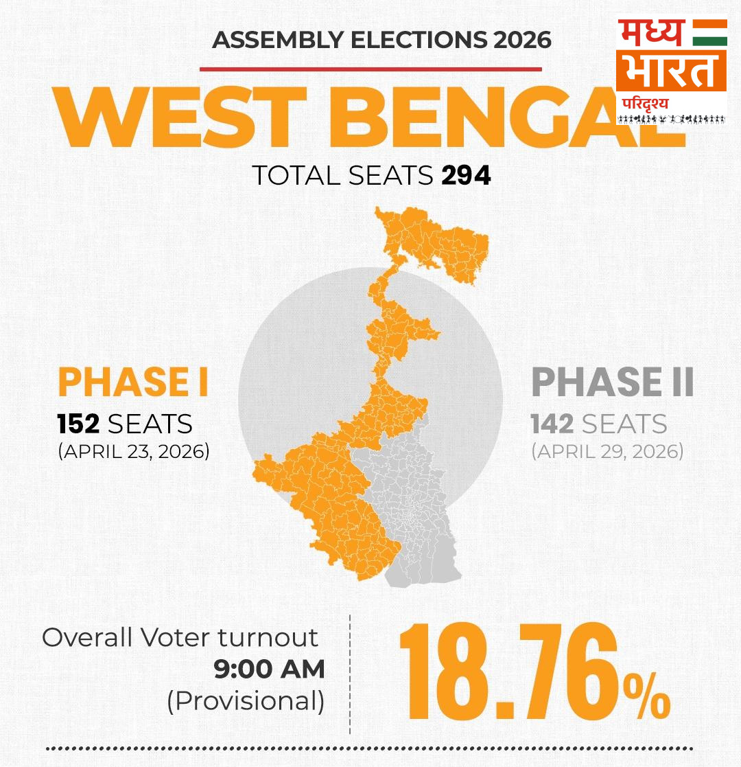 चुनाव आयोग के अनुसार, तमिलनाडु में लगभग 17.69% और पश्चिम बंगाल में करीब 18.76% मतदान दर्ज किया गया है।