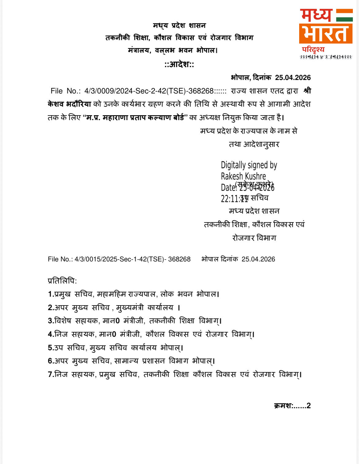 वहीं, पूर्व संगठन मंत्री केशव भदौरिया को महाराणा प्रताप कल्याण बोर्ड का चेयरमैन बनाया गया है। इस नियुक्ति को ओबीसी वर्ग, खासकर युवाओं को साधने की रणनीति के तौर पर देखा जा रहा है, जहां स्किल डेवलपमेंट और रोजगार पर विशेष फोकस रहेगा।
