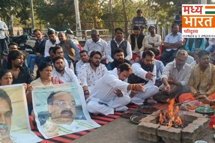 NIT चौपाटी विवाद: कांग्रेस ने किया सद्बुद्धि यज्ञ, BJP नेताओं के पोस्टर लेकर किया हवन
