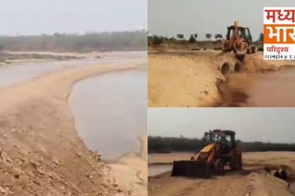 इंद्रावती नदी में ‘रेत का खेल’: बीच धारा बनी सड़क